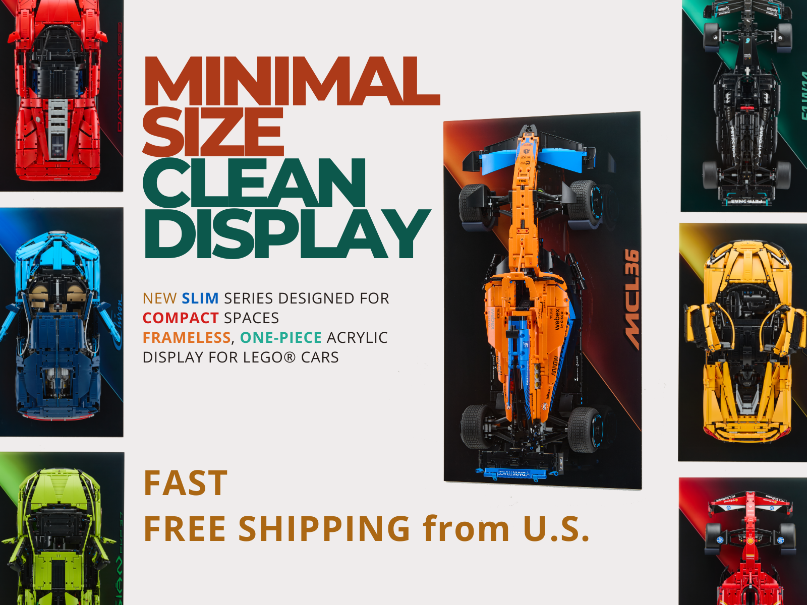 Acrylic Top-Speed Wall Mount Display for LEGO® Technic™ McLaren Formula 1™ Race Car 42141 V3
